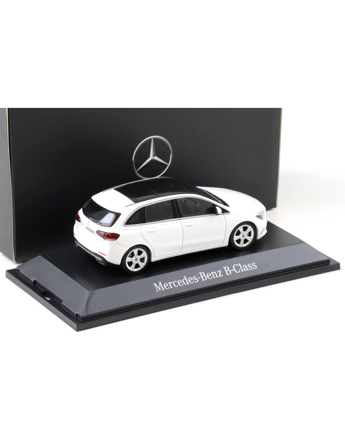 Des équipements tels que le système d'éclairage intelligent à LED, la boîte de vitesses 7G-TRONIC PLUS, le toit panoramique ou les jantes en alliage léger de 19 pouces (48,3 cm) à doubles branches caractérisent la ligne Progressive de la Classe B. Ce véhicule sportif et élégant est désormais disponible en miniature pour enrichir votre collection. Ce modèle de précision, assemblé à la main, a été créé à partir des données CAO originales et arbore une peinture authentique. L'intérieur, décoré avec un grand souci du détail, offre une reproduction fidèle de tous ses éléments. Présentée dans un coffret, la miniature repose sur un socle imprimé et est livrée dans un élégant emballage Mercedes-Benz.