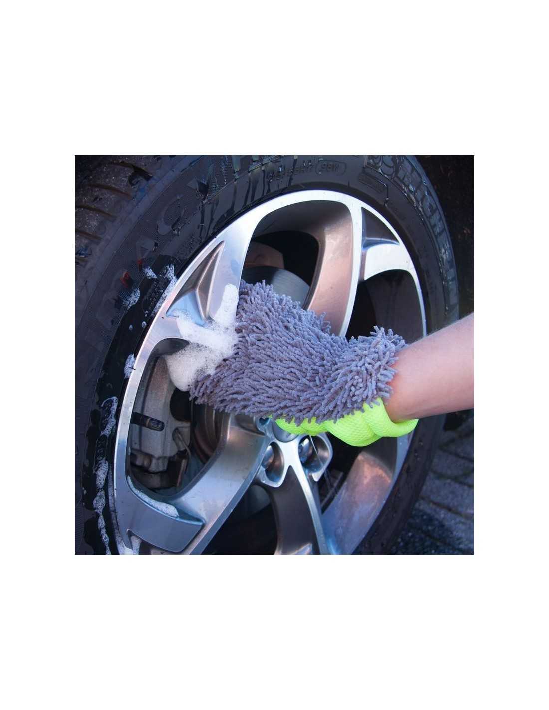 Gant de lavage robuste avec fonction double face. Idéal pour laver votre voiture, vos jantes et pour éliminer les insectes sur votre peinture. Grâce à ses 5 doigts, ce gant offre une adhérence optimale et vous pouvez également atteindre facilement les coins inaccessibles, comme par exemple entre les rayons de vos jantes. Un côté convient pour laver votre voiture, l'autre côté pour éliminer les ternissures et les insectes. Convient à toutes les surfaces et laques.
